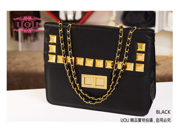 *UOU精品*【91106】˙韓劇主打款˙卯釘金鏈方包 。ysl NT:780