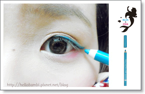 這次的仿妝是Popteen 2010年9月號刊載的久美子美人魚彩妝 雖然我並沒有特別愛久美子,可是第一眼看雜誌就被她這個妝煞到了! 於是就立刻造著來仿妝(但是卻拖了快半年才把文章生出來... ) 其實就是照著雜誌上的步驟再用自己的方法改良畫出來的啦! 有興趣的朋友可以一起來 STEP.1 首先,最重要的第一步驟來啦! 是說,我跟久美子最大的不同除了不是正妹以外, 就是久美子有著超明顯的大外雙而我只有無神的內雙阿(哭) 所以在上妝之前先把眼皮貼出來,這次一眼用了四條膠條+膠水固定 因為是為了拍照才這麼誇張的使出這招的 這樣貼實際上近看是會露餡的啊!好孩子平時千萬不要這樣貼啊! 別說我沒提醒你,到時被自家好姐妹虧到腦羞我也幫不了妳呀~(攤手) STEP.2 用妙巴黎 果然美肌粉底液#51上底妝 自從買了果然美粉底液就衷心於它了~妝感好自然 STEP3 用MAYBELLINE 媚比琳 純淨礦物遮瑕筆 遮黑眼圈痘疤跟鼻翼兩側 STEP.4 使用INTEGRATE絕色魅癮 琉璃艷采腮紅最左邊的打亮色 在眼下的C字處跟鼻樑部份打亮 STEP.5 用深色打陰影營造小臉效果,記得打到下巴之前就要停止囉 因為整個臉的輪廓都打上的話,下巴可是會跟著縮短的! 我使用的是SANA COVERCOM 魔幻防曬蜜粉餅#02 STEP.6 拿出KOSE高絲Cosmagic魔鏡愛心腮紅#PK01 用愛心部分的腮紅霜打底, 當初衝著這盒是砂糖君代言才買的XD(久美子也有代言還是監製的樣子?) 盒子一整個可愛到不行!當初拿到時呆著看他傻笑了好久! 我一直都捨不得用,正好這次雜誌示範也是用這盒,我就拿出來用了 STEP.7 用左邊重色部份打上腮紅 再用右邊的打亮色疊刷將腮紅的輪廓暈開,強調光澤感 STEP.8 用INTEGRATE絕色魅癮 絕對有型眉筆#BR741稍微描繪眉型 接下來進入眼妝部門囉~先來張眼妝近照瞧瞧 STEP.9 首先先用elf眼影打底膏打在整個眼皮上 STEP.10 (LOGO跑掉了...圖太多懶的改了原諒我XD) 用Lavshuca戀法迷棕眼彩盒# BE-1的右上那格打在整個眼皮上 STEP.11 使用大創大地色五色眼影盤最右咖啡色作為收斂色,打在雙眼皮層 STEP.12 用Kiss Me 花漾美姬 夢幻淚眼防水眼線筆 來描繪眼線部份,順著眼型畫然後眼尾稍微延伸上揚 STEP.13 用fasio 深邃光影眼彩組#005溫暖嫣紅 用右二的桃紅色來畫下眼瞼,從瞳孔到眼尾越來越粗的下眼線 STEP.14 用BOURJOIS妙巴黎 亮亮仙女棒#54描繪藍色上眼線