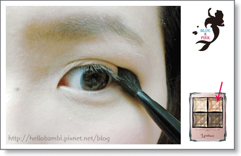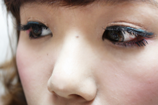 從眼尾的3/4處開始,畫在剛才黑色眼線的上方